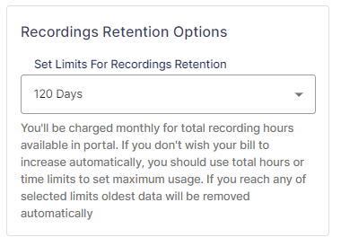 Set your Retention Limits. Here you can choose how long to keep your call recordings saved in the TeleGo User Portal before they're deleted.