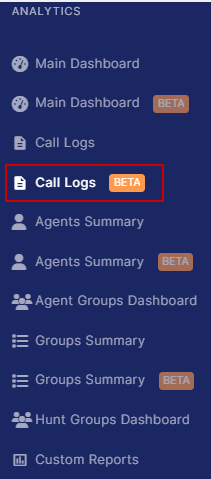 3. The Analytics submenu should expand. From this submenu, click on Call Logs BETA.